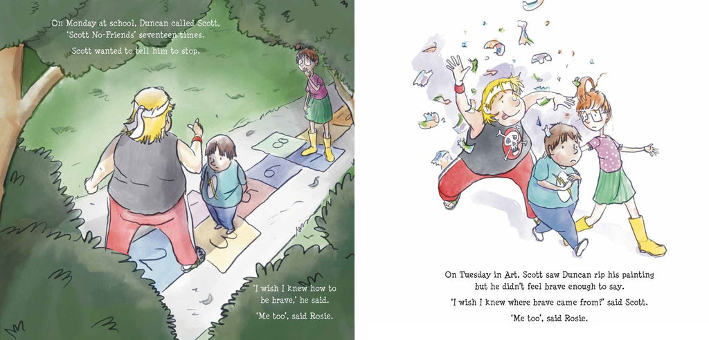 For some kids, school is a place full of friends and fun. For others, though, it is a lonely place where bullies pick on them and it feels impossible to be brave. Meet Scott, Buttons and Duncan, otherwise known as A Boy, his Bear and a Bully.
