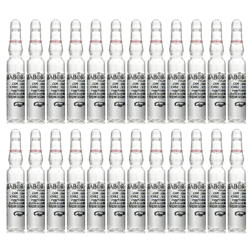 Transform your skincare routine with Babor CP Ampoule Concentrates 3D Firming, specially formulated for mature skin in need of enhanced firmness and contour. Each pack includes 24 x 2ml (0.06oz) ampoules of this luxurious serum, packed with powerful, natural ingredients to rejuvenate and revitalize your complexion. This premium ampoule serum concentrate features a unique active ingredient complex, including an oligosaccharide derived from sea lettuce and transformative tetrapeptides. These combined forces work synergistically to target the extracellular matrix of your skin, promoting natural collagen and hyaluronic acid synthesis. Experience improved skin firmness, enhanced elasticity, and a significant reduction in the appearance of fine lines and wrinkles. Boosted with organic silicon, this formula strengthens the skin's structural elements, softening the look of deep-set wrinkles and delivering a smoother, more youthful complexion. Facial contours will appear more defined, and your overall appearance will reflect greater harmony. The Babor CP Ampoule Concentrates 3D Firming serum is vegan and crafted from clean ingredients, ensuring a guilt-free skincare experience. Elevate your skincare game with Babor's effective ampoule treatment, perfect for achieving that well-deserved skin rejuvenation today.