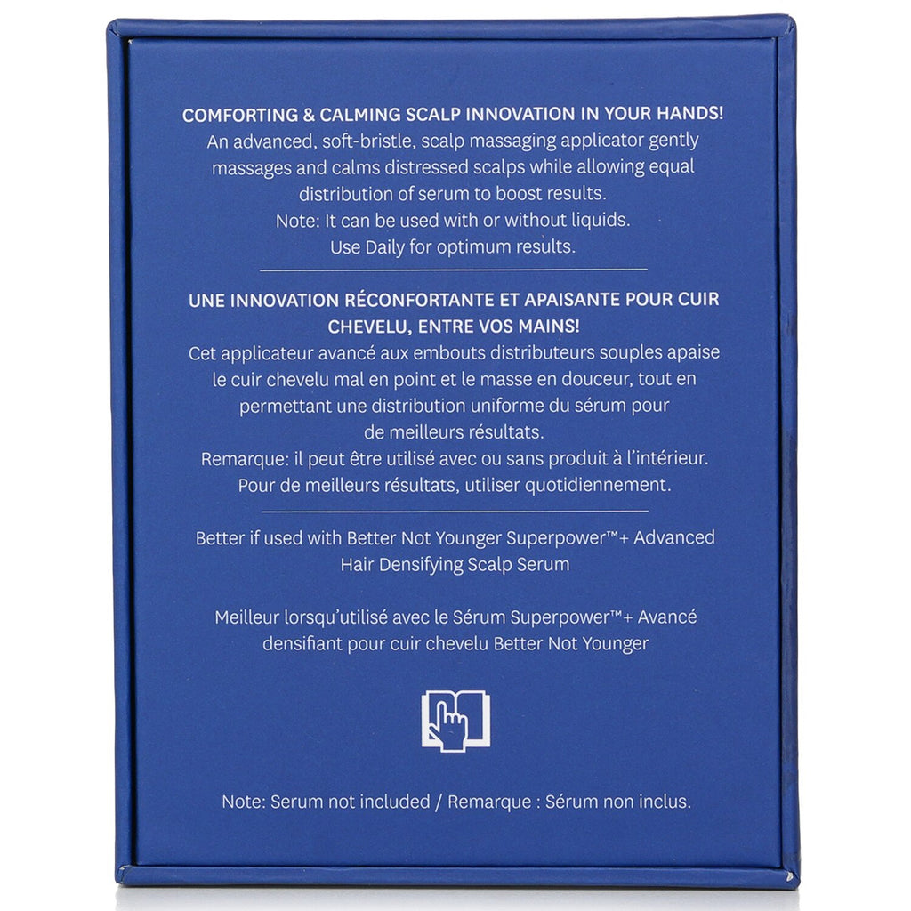 Introducing the Better Not Younger Superpower+ Advanced Comfort Gentle Scalp Massaging Serum Applicator. This innovative applicator is designed to elevate your scalp care routine, promoting healthier, stronger hair. With its soft bristles, this gentle applicator provides a soothing scalp massage experience that helps to relieve tension while stimulating blood circulation. It optimizes the delivery of scalp serums, ensuring an even application that maximizes the serum's effectiveness and facilitates the absorption of essential ingredients. Perfect for those looking to enhance their hair care regimen, this advanced scalp applicator is your secret weapon for achieving nourished and revitalized hair. Transform your scalp care with Better Not Younger's commitment to quality and efficacy, designed exclusively for your comfort. Elevate your hair health with the ease and effectiveness of the Superpower+ applicator. Ideal for daily use, this tool integrates seamlessly into any hair care routine, making it suitable for all hair types. Experience the difference with our scalp massaging applicator and enjoy luscious locks that shine with vitality. Say goodbye to hair concerns and embrace the ultimate scalp care with Better Not Younger, an authentic New Zealand brand focused on genuine innovation in haircare.