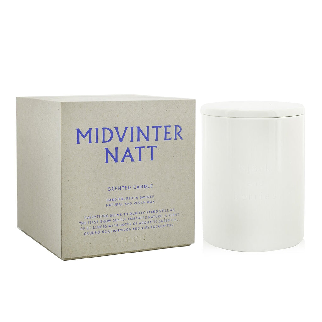 Discover the enchanting ambiance of the Bjork & Berries Scented Candle - Midvinternatt 240g/8.5oz, a luxurious vegan candle crafted from 100% natural and biodegradable wax. Elevate your home decor with this exquisite candle that lies at the intersection of sustainability and style. Immerse yourself in the captivating fragrance that combines aromatic green fir, grounding cedarwood, and airy eucalyptus, perfect for creating a cozy atmosphere in any room. With an impressive burn time of up to 55 hours, this long-lasting scented candle is ideal for evenings of relaxation or social gatherings. Housed in a beautifully designed container, this candle serves not only as a source of light but also as a stunning decorative piece that enhances your living space. Hand poured in Sweden, each candle brings a touch of Scandinavian elegance to your decor. Once the flame has extinguished, the versatile container can be repurposed to store trinkets, plants, or even food, adding to its eco-friendly appeal. Perfect for gifting or your own home, the Bjork & Berries Scented Candle is a must-have for those who appreciate quality and conscientious living. Caution: Burn only on a heat-resistant surface and keep away from drafts, children, and pets for safe enjoyment.