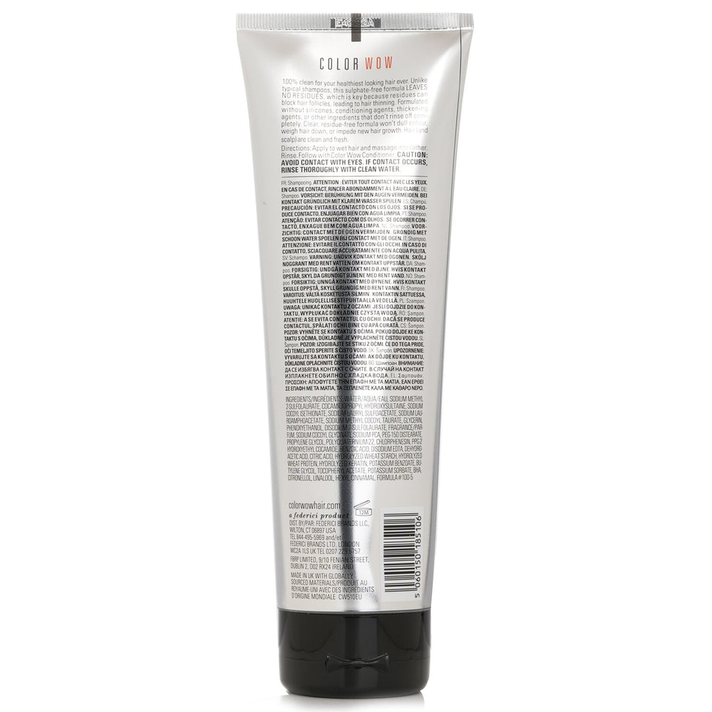 Introducing Color WOW Color Security Shampoo (250ml) – the ultimate sulfate-free solution for color-treated hair. This innovative shampoo is expertly formulated with a blend of 8 non-stripping cleansers that gently cleanse while protecting your vibrant color. Say goodbye to color fade and hello to radiant locks! The presence of a super gentle Japanese amino acid creates a rich, creamy lather that not only cleanses but also nurtures your hair without leaving any residue behind. This means your hair and scalp can maintain optimal health while looking their best. Ideal for all hair types – including extensions – this shampoo ensures that your hue remains intact, and your strands stay smooth and manageable. Unlike many others, Color WOW Color Security Shampoo is free from silicones, thickening agents, and conditioning ingredients that weigh hair down. Embrace the beauty of vibrant, healthy hair without compromises. Made in the USA, this product guarantees authentic quality for your hair care routine. For those committed to maintaining bold and beautiful color, Color WOW is your go-to choice for luxurious hair care that lasts. Experience the difference today with Color WOW Color Security Shampoo. Perfect for anyone wanting to protect their color and enjoy beautiful, healthy hair!