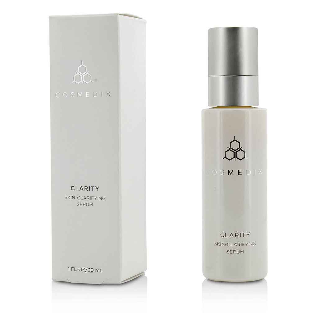 Experience the transformative power of CosMedix Clarity Skin-Clarifying Serum, a premium 30ml formula designed to combat acne and restore your skin's natural radiance. This all-natural anti-acne serum features a potent blend of Salicylic Acid and Pregnenolone, which work together to deeply exfoliate and unclog pores, effectively eliminating impurities and regulating oil production. Enhanced with the soothing properties of Willowherb, Tea Tree Oil, and Aloe Vera, this serum not only targets blemishes but also calms agitated and problematic skin, promoting a healthier complexion.