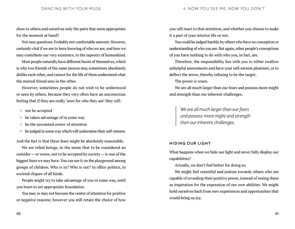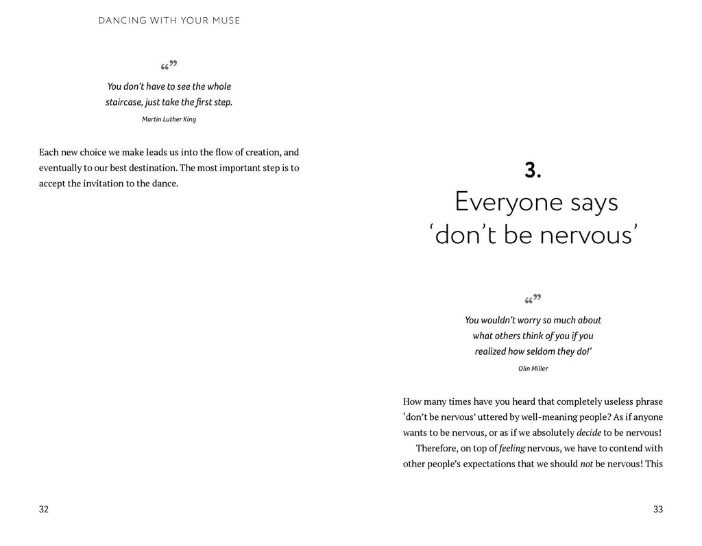 Fear of failure is a universal issue that can hold even the most talented of people back from reaching their full potential. Dancing with Your Muse is a series of thirty essays which speak about the common and debilitating anxieties encountered on the path to creative expression. Sections include: