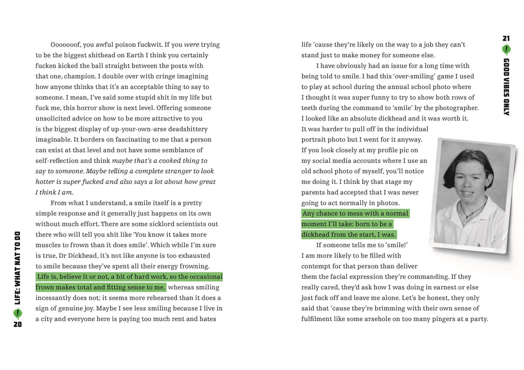 Now, his target's the tired old life advice he's had enough of-